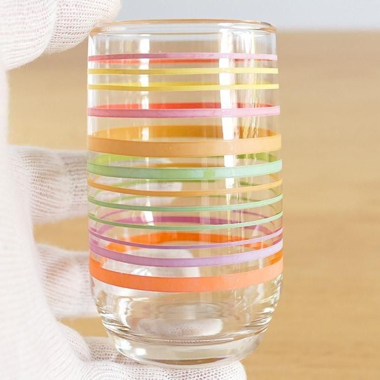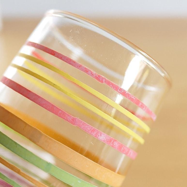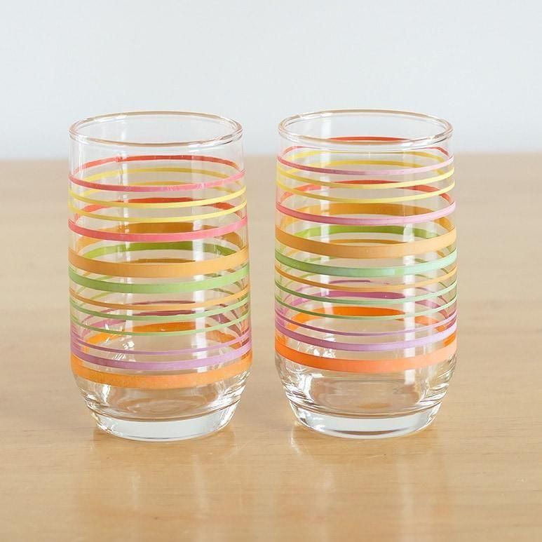 【★3】ヴインテージ ジュースグラス パステルバンド 2個セット