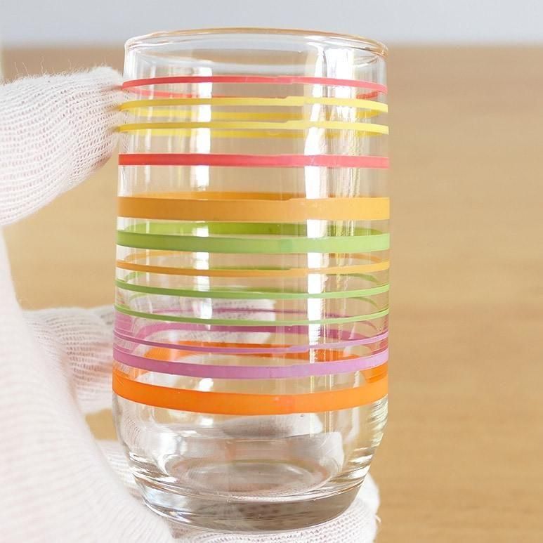 【★4】ヴインテージ ジュースグラス パステルバンド