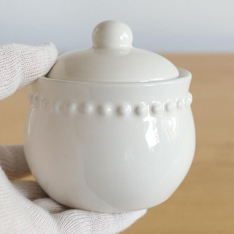 | サイズ | シュガーポット:直径9.5cm×高さ9.5cm(蓋を含む) クリーマー:直径8cm×高さ9cm |