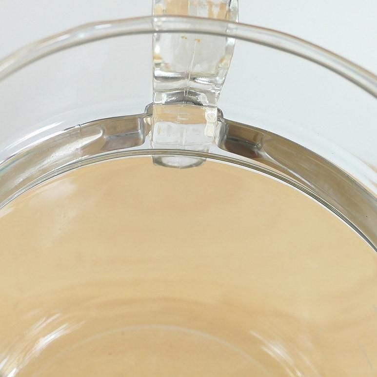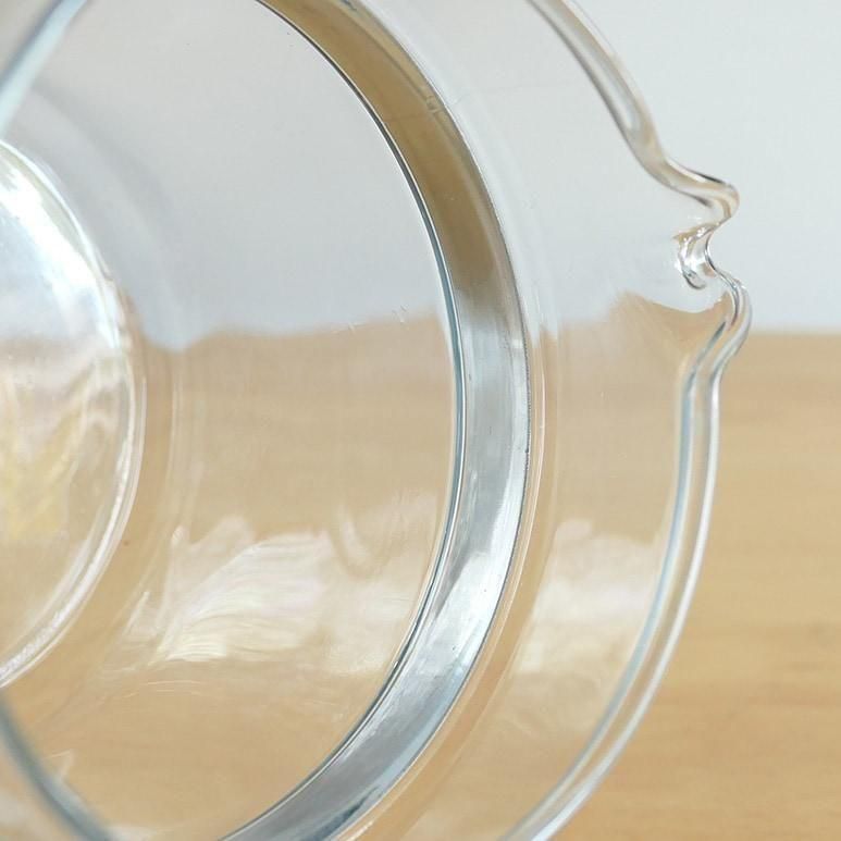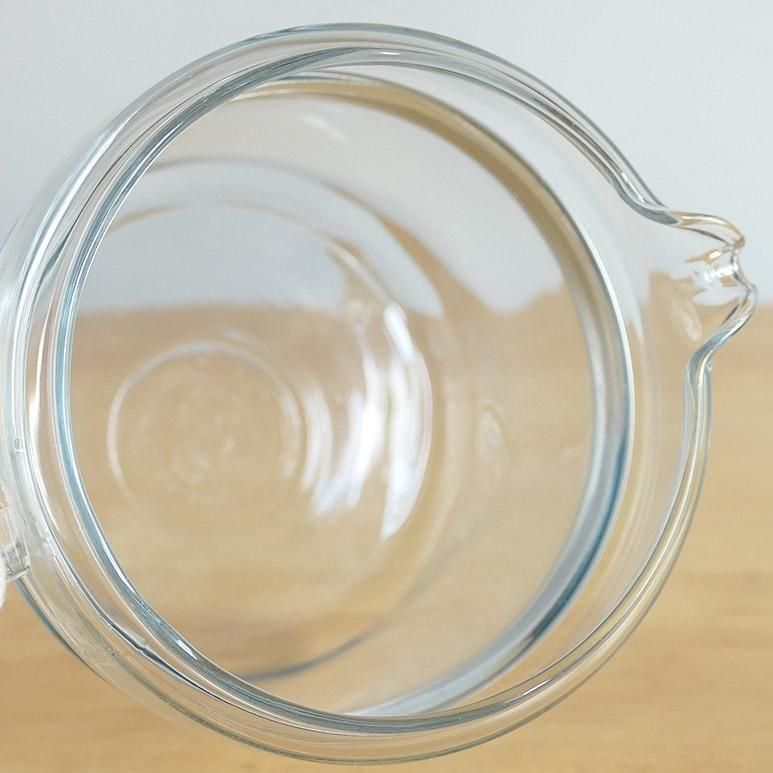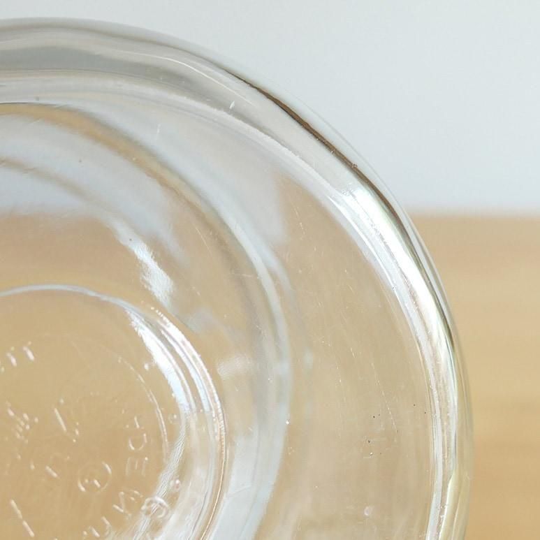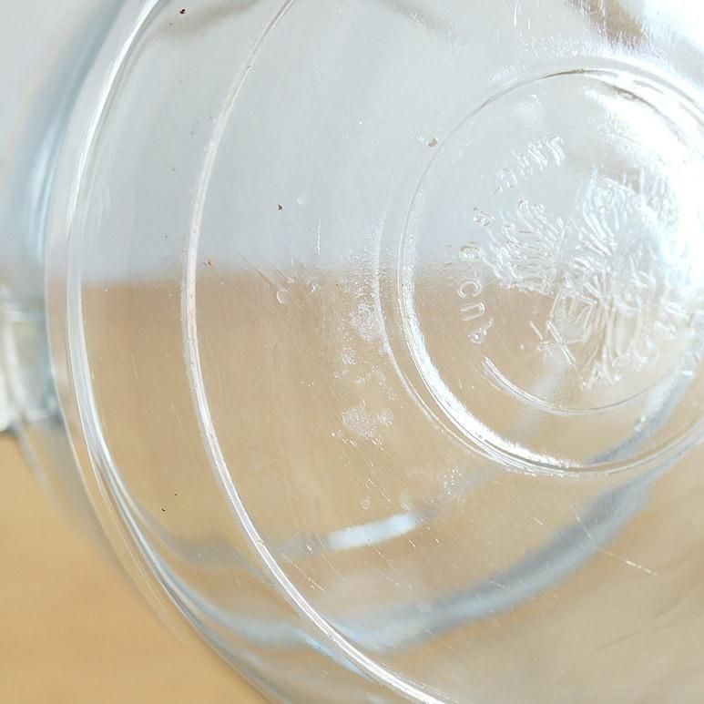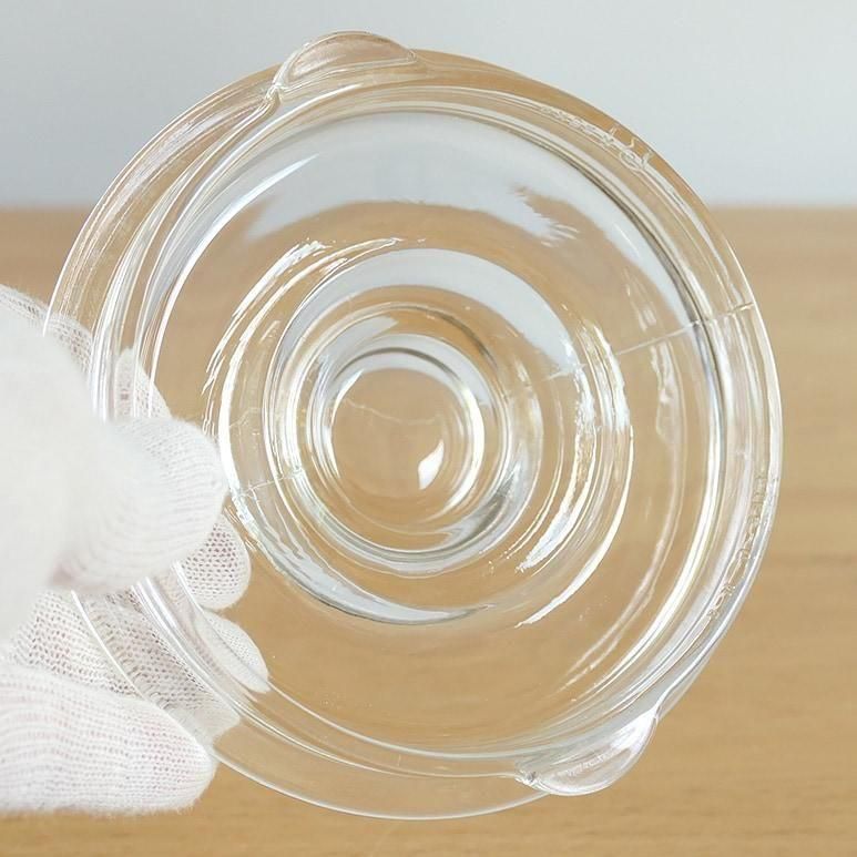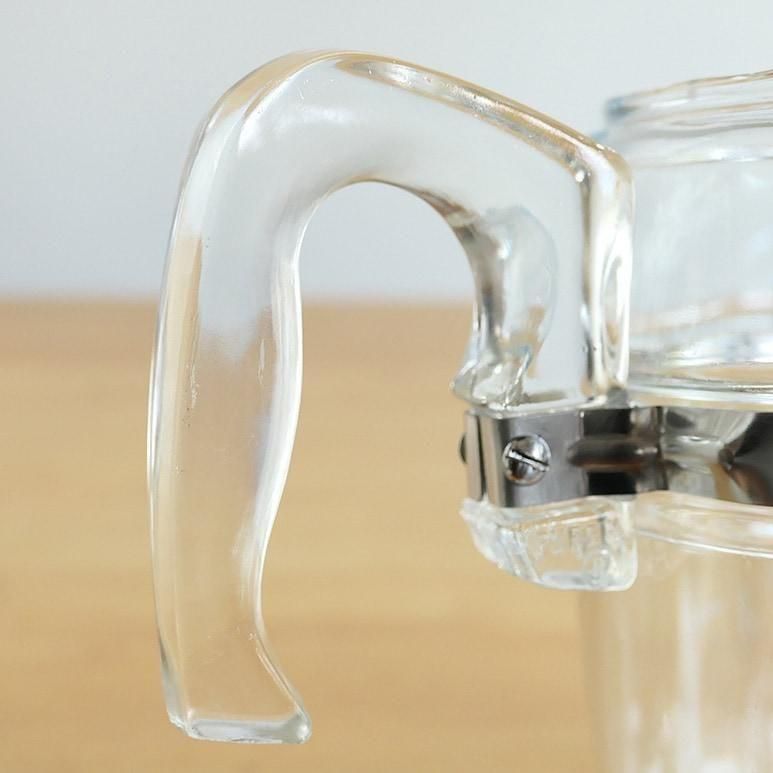オールドパイレックスのパーコレーターは、4カップ、6カップ、9カップの3種類あり、こちらは真ん中のサイズになります。お茶入れとして使う時の参考までに、中の部品を外した状態で水を入れると、8分目ぐらいで1.7リットル、フタぎりぎりの満タンで2.0リットル入ります。