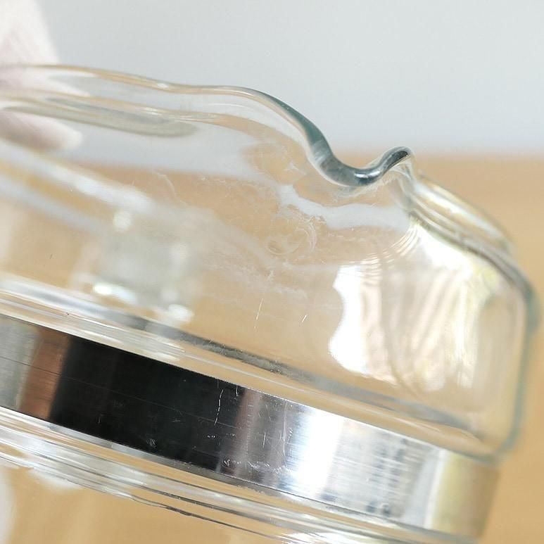 | 状態 | ヒビ・カケはありません。バスケットとガラスポンプが欠品しています。本体接地面と注ぎ口を中心に擦れ、ハンドル下部にわずかなザラつきがあります。蓋は全体的に擦れで曇っています。麦茶入れなど普段使い用にいかがでしょうか。 |