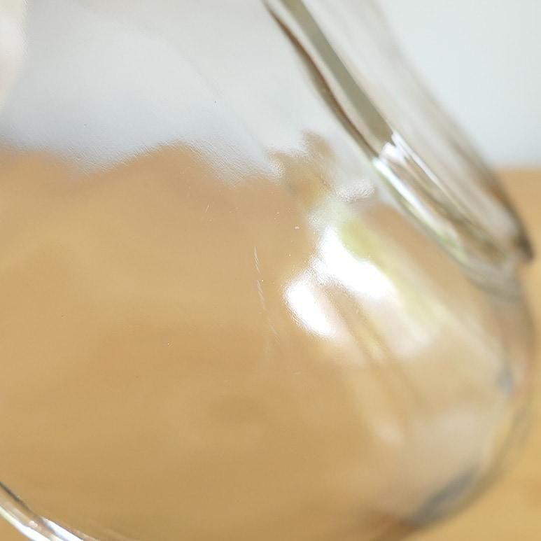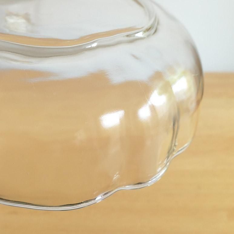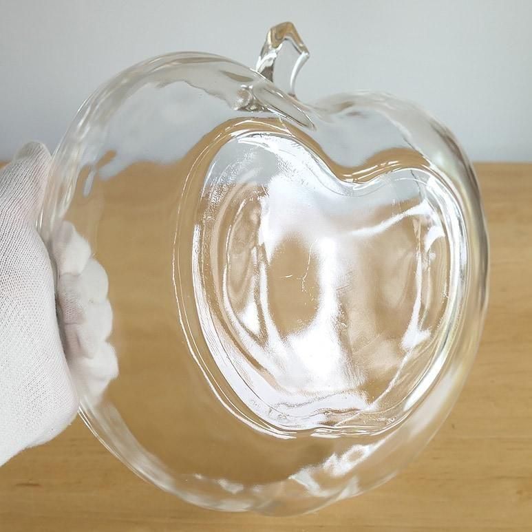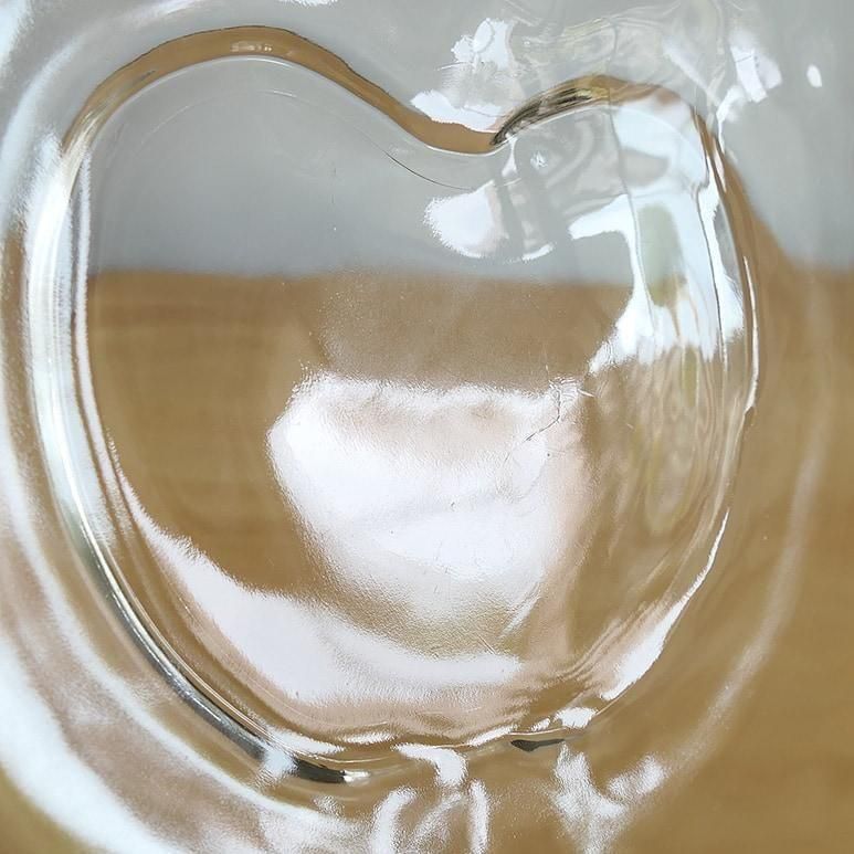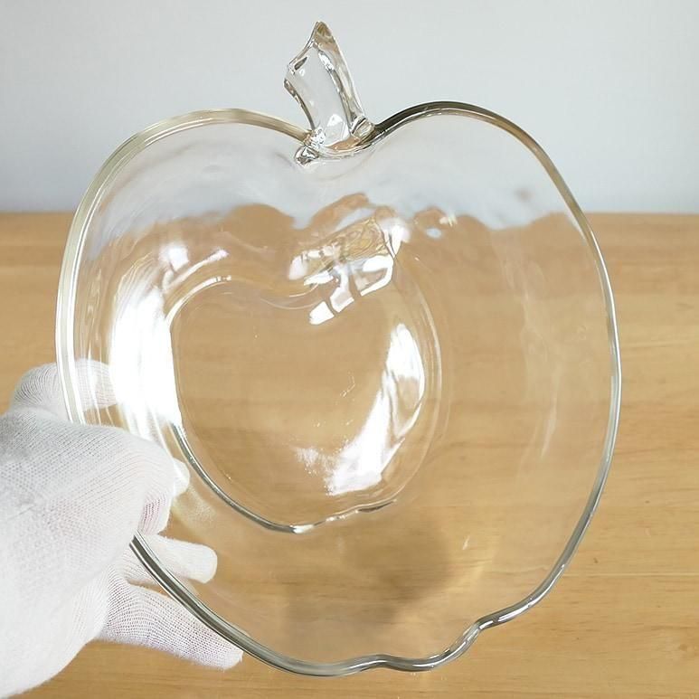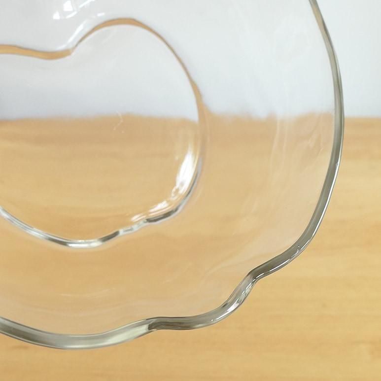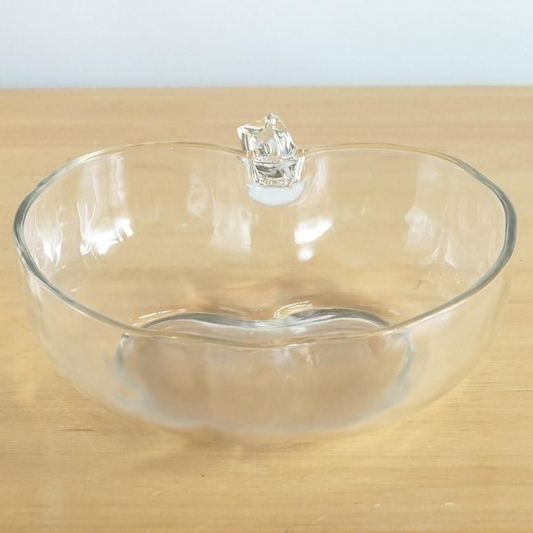 りんごの形が可愛いオーチャードウェアシリーズのボウル。両手で抱えて持つぐらいとても大きなサイズです。厚みのあるクリアガラスで様々なお料理にお使いいただけます。