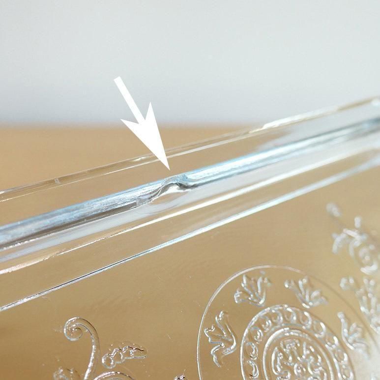 | 状態 | 本体はヒビ・カケはありません。表面にわずかな擦れ、リムの一部に製造上のガラスの歪みがあります。蓋のリムにカケが2ヶ所あります。凹みを感じる程度でご使用には差し支えありません。ツヤがピカピカにありキレイな状態です。 |