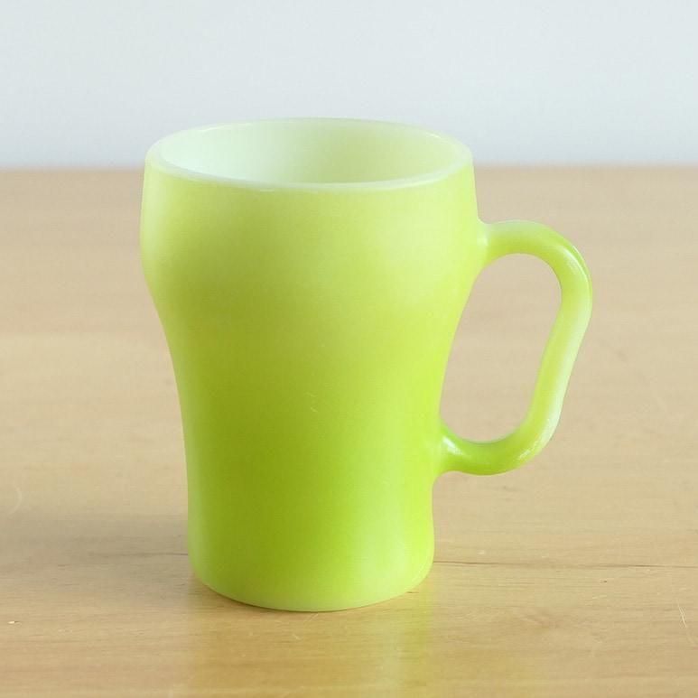 ファイヤーキングの中でも人気の高いソーダマグ。別名コーラマグとも呼ばれています。しゅっとした独特なフォルムは、炭酸が吹きこぼれないように考えられたデザインなのだそう。カラーバリエーションも豊富で、青・橙・黄色・緑・白・茶色などがあります。