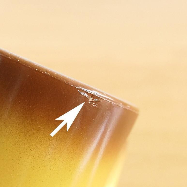 | 状態 | ヒビ・カケはありません。リムに多少の擦れと製造上のガラスのシワ、側面下部に浅い劣化線があります。ツヤがピカピカにあり良好な状態です。 |