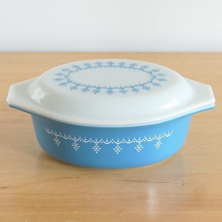 【★4】オールドパイレックス スノーフレーク オーバルキャセロール 1-1/2クォート