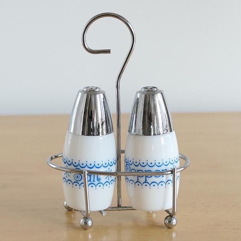 | 状態 | ヒビ・カケはありません。ソルト&ペッパーの蓋とスタンドのメッキ部分に多少の擦れ、裏側に腐食があります。ご使用には差し支えありません。本体は目立つダメージはありません。ツヤがありキレイな状態です。 |