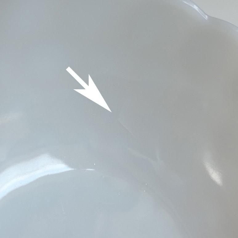 | 状態 | 内側にヒビのように見える劣化線があります。外側からは見えず、浅いものなのでご使用には差し支えないと思います。内側にわずかな擦れがあります。ツヤがピカピカにありキレイな状態です。 |