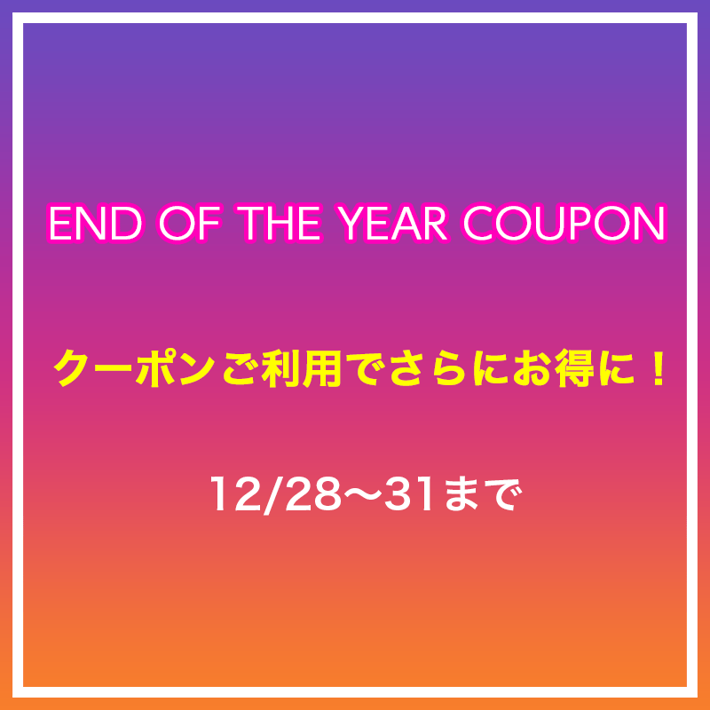 2025年も残すところあと僅かですね。日頃のご愛顧に感謝を込めて、お得なクーポンをプレゼントします! 新着商品を含む、すべての商品が対象です。 ▼ クーポン内容(すべて税込)4,000円OFF(商品合計50,000円以上… 続きを読む END OF THE YEAR クーポンをプレゼント!
