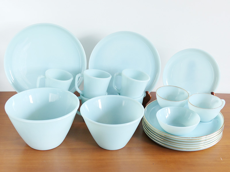 本日は、ファイヤーキングのターコイズブルーの食器を追加しました。